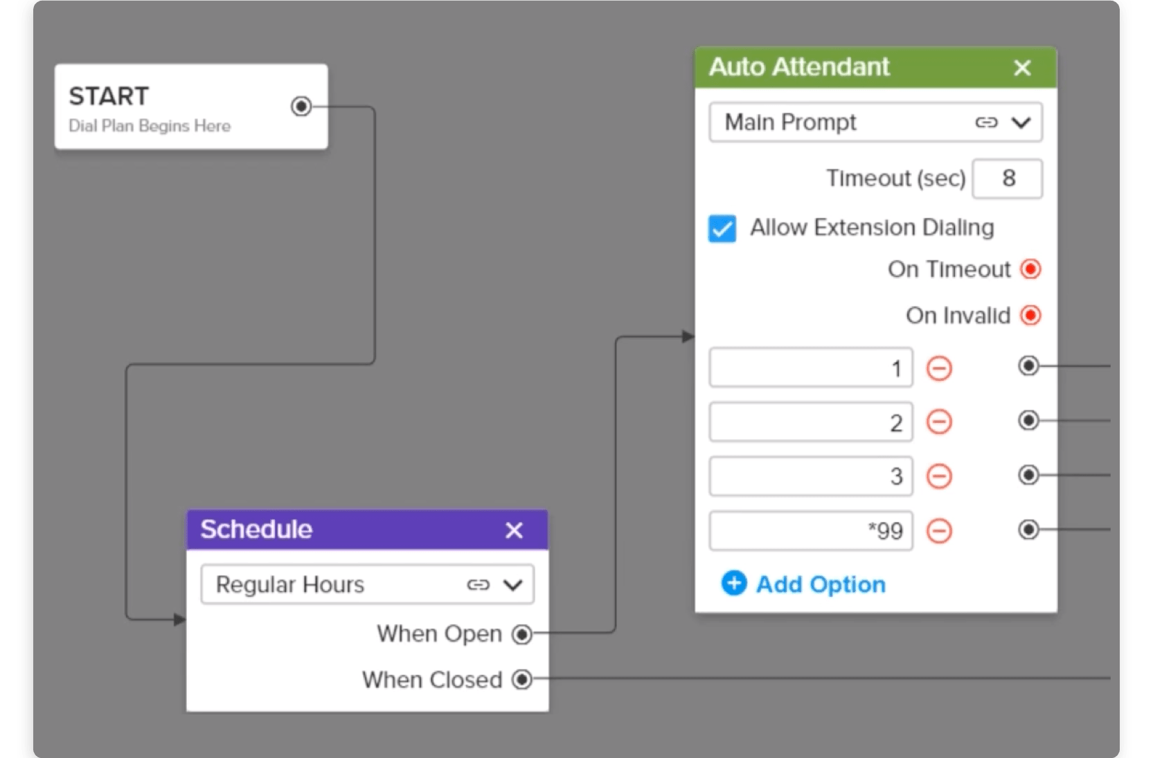 La respuesta automática de llamadas ayuda a las personas que llaman incluso cuando un empleado no esté presente o se encuentre en otra llamada. El direccionamiento de llamadas ayuda a conectar a las personas que llaman a la extensión correcta. Cuando se utilizan al mismo tiempo, con nuestro Editor visual de planes de marcación, estas características pueden ayudar a controlar todo, desde bloquear las llamadas no deseadas y las llamadas de sistemas automáticos hasta direccionar a los clientes a un correo de voz o a un representante que esté disponible.