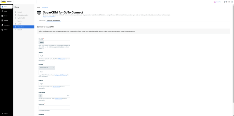 - Navigate through Authorizing GoTo to integrate with SugarCRM.