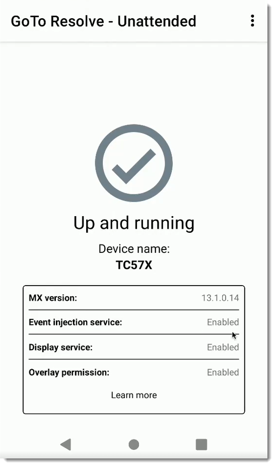 To remote control a Zebra device without any user interaction (unattended access) the GoTo Resolve app needs to be configured via the Zebra MX framework.