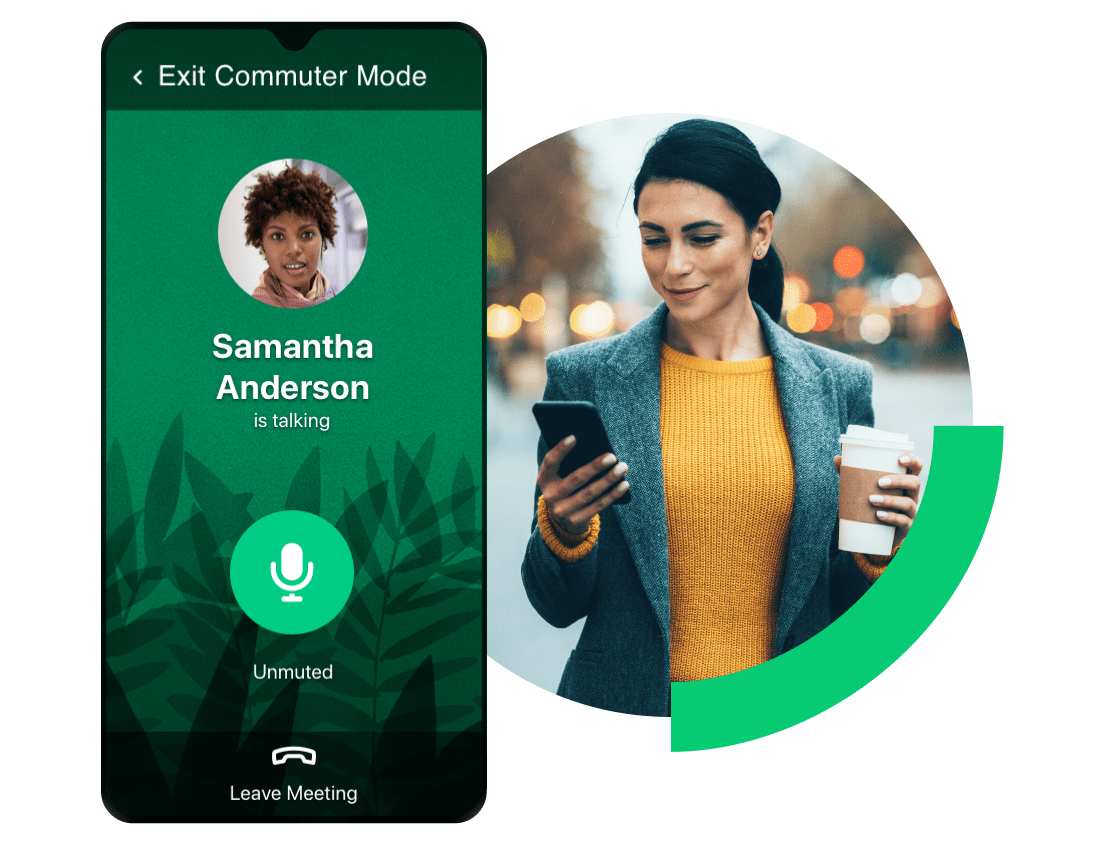 - Conferências sem distrações – Transforme a tela do seu celular em um botão codificado por cores para ativar/desativar o áudio.